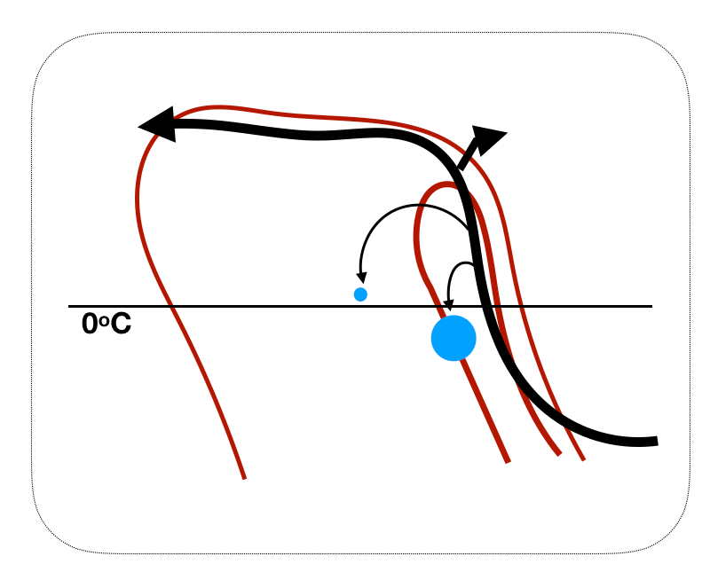 The hypothesis is simple: Low level rain size-concentration separation will occur when either smaller hydrometeor are advected further away (stronger updraft and front-to-rear flow), or graupel can grow more easily (more large particles are produced). Graphical summary of our hypothesis