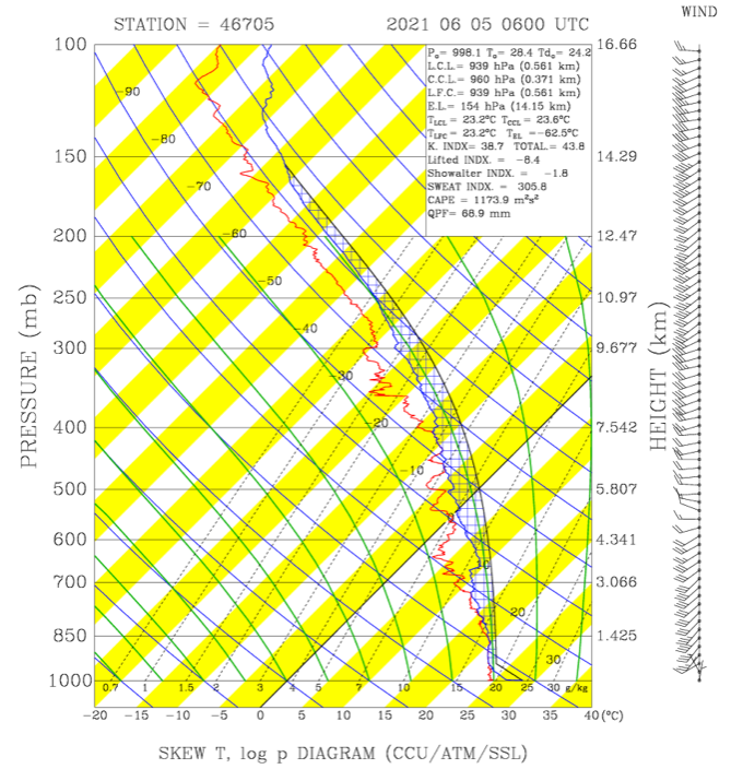 Extremely moist lower troposphere preceding a typical Mei-yu MCS event.